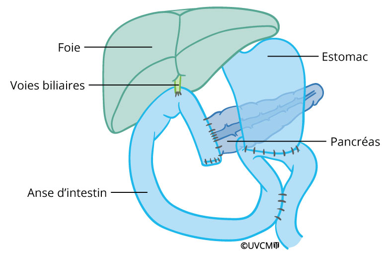 Situation après la résection de la tête du pancréas après l'opération de Whipple classique